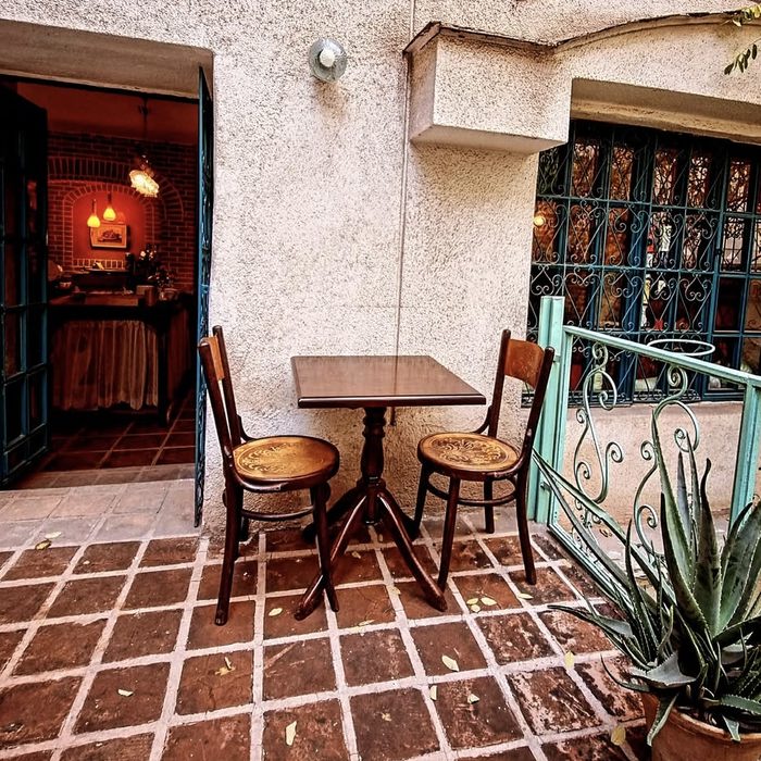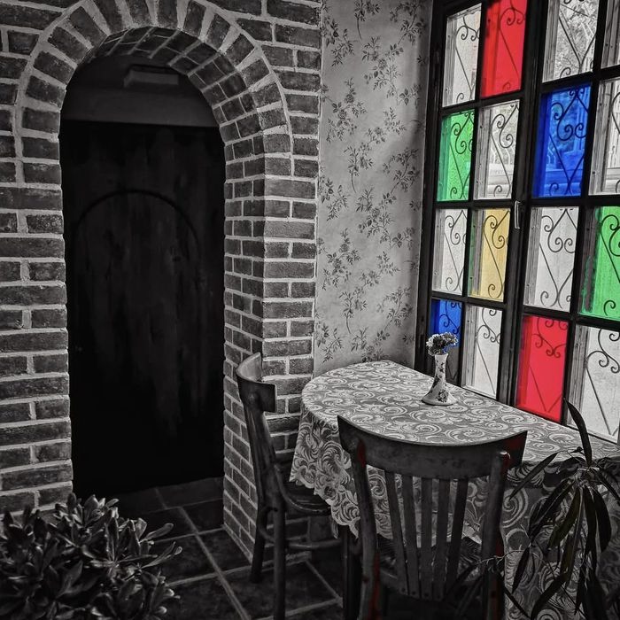 آندودومینی یک کافه دنج و صمیمی با معماری کاملاً گرم، قدیمی و اروپایی–کاتالانی است؛ آجرهای قدیمی، شیشههای رنگی، میزهای چوبی روستیک و نورپردازی زرد ملایم، فضا را شبیه یک خانه قدیمی آرام و خوشبو کرده.