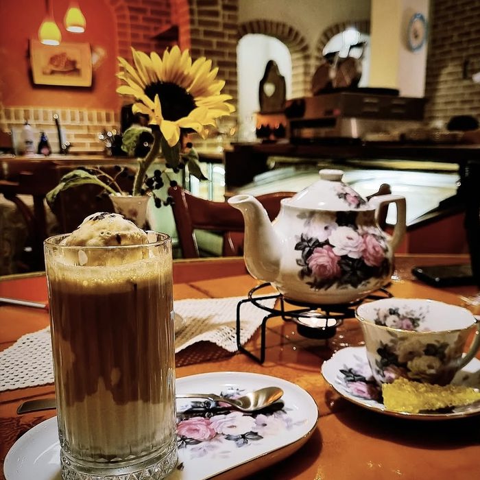 منوی آن پر از کیکهای خانگی، دمنوشها و نوشیدنیهای کلاسیک است و سرو غذا در ظروف گلدارِ قدیمی، حس نوستالژی را کامل میکند.