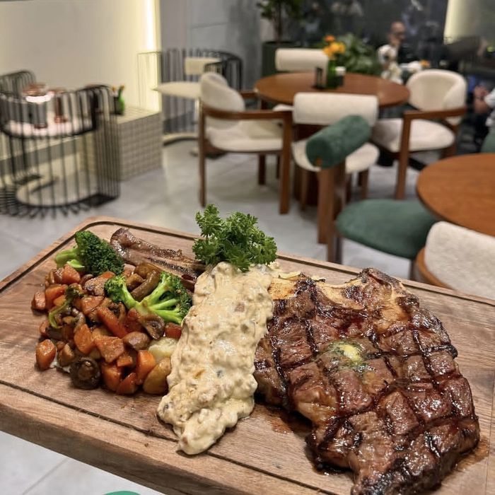 کافه سالت با رنگهای غالب سبز تیره، سفید روشن، قهوهای چوبی و قرمز غذاها که در لوگو، صندلیها و پستها برجسته شده، فضایی مدرن، تازه و گوشتمحور ایجاد کرده؛ نورپردازی گرم و طبیعی با لامپهای آویز، نور روز از پنجرههای بزرگ و نورهای نقطهای، جزئیات غذاها و محیط را برجسته میکند و حس اشتها و راحتی را القا مینماید؛ دکوراسیون معاصر با المانهای هنری مانند شخصیت سرآشپز ماسکدار با کلاه، گیاهان کاکتوس، میزهای چوبی، دیوارهای سفید با نوشتههای انگیزشی، صندلیهای سبز مخملی، لوازم دکوری مانند درخت کریسمس و گلهای قرمز، ترکیبی از سبک شهری و جشنوار را نشان میدهد و فضایی دلنشین برای کافه-رستوران فراهم آورده؛ حالوهوای محیط شاد و پرجنبوجوش است که حس دورهمی دوستانه، جشنهای فصلی مانند کریسمس، طنز با فیگورهای کوچک روی غذا، حضور حیوانات مانند گربه و رویدادهای ویژه را منتقل میکند؛ منو شامل غذاهای متنوع مانند برگرهای آبدار با پنیر ذوبشده و سیبزمینی سرخشده، استیک با پوره سیبزمینی، بروکلی و هویج، صبحانه کامل با تخممرغ و سوسیس، ناچو با گوشت، سالاد تازه، کبابهای کبابی و دسرهای گوشتی است که همگی با چیدمان حرفهای و گارنیش تازه ارائه میشوند.