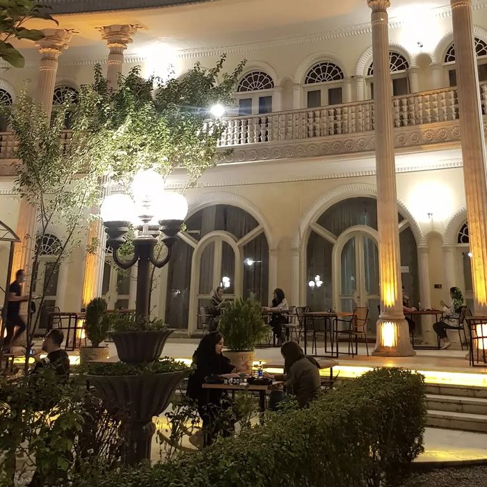عمارت دیباچه یک کافهرستوران لوکس با هویت معماری کلاسیک ایرانی است که در آن نورپردازی عمدتاً طبیعی، نرم و جهتدار است و اغلب از نور روز با سایههای ملایم استفاده شده تا بافت غذا، ظروف و فضا عمیقتر و زندهتر دیده شود؛ در ساعات شب نیز نور گرم و کنترلشده با کنتراست متوسط به کار رفته که حس صمیمیت، آرامش و اشرافیت را همزمان القا میکند. پالت رنگی غالب شامل کرم، بژ، سفید، سبز زیتونی، آبی ملایم و قهوهای گرم است که با رنگ غذاها مثل قرمز سسها، طلایی نان و قهوه و سبزی تازه کنتراست بصری جذابی ایجاد میکند. دکوراسیون مبتنی بر عمارت تاریخی با ستونها، قوسها، حیاط مرکزی، درختان و آبنما است که حس نوستالژی، اصالت و لوکس بودن آرام را تقویت میکند و بهخوبی با چیدمان مدرن میزها و ظروف مینیمال ترکیب شده است.