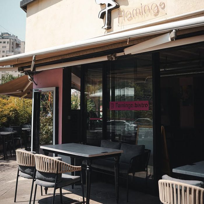 Flamingo Bistro در یک محیط نسبتاً گسترده، ترکیبی از غذاهای ساده و نوشیدنیهای معمول کافهای را ارائه میکند.