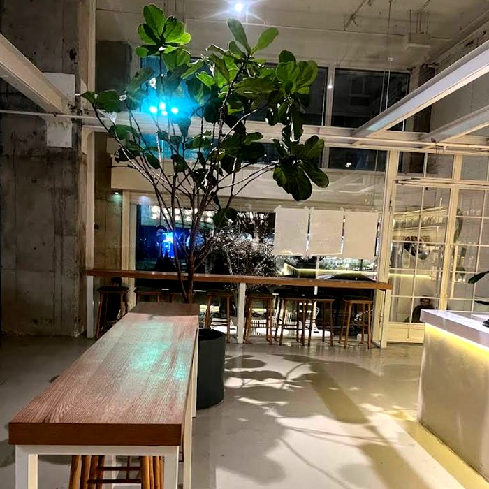 کافهبیکری «کای» شعبه ونک یک فضای کاملاً روشن، مدرن و باز دارد؛ معماری آن ترکیبی از بتن خام، شیشههای بزرگ و مبلمان سفید مینیمال است که محیط را سبک، خلوت و معاصر نشان میدهد.