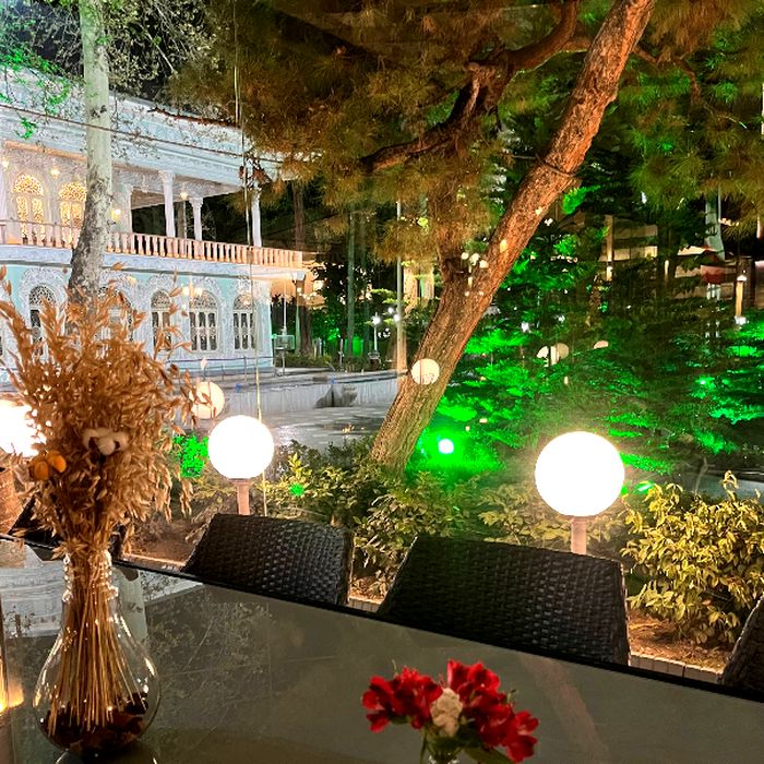 فضای باز و سرسبز، نور طبیعی زیاد، دکوراسیون گرم، میزهای چیدهشده توی حیاط یا کنار عمارت قدیمی و حس آرامش و لوکس بودن. مناسب دورهمیهای دوستانه، قرارهای رمانتیک، صبحانههای آخر هفته یا شبنشینیها.