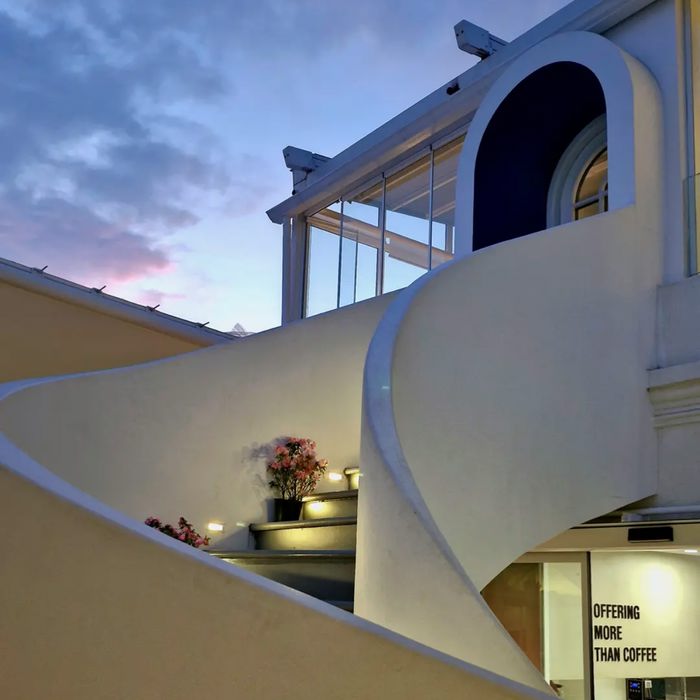 Parley Café یک فضای روشن و مدرن دارد؛ ترکیب سفید و آبی در معماری، درها و قابها کاملاً مشخص است.بخشی از فضا روی تراس قرار دارد که با شیشه پوشیده شده و چند میز با چیدمان مرتب در آن دیده میشود.داخل کافه هم میزهای ساده، اکسسوریهای آبی و سفید، و چیدمانی با حالوهوای کاری و رویدادی استفاده شده است