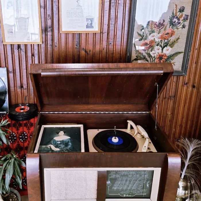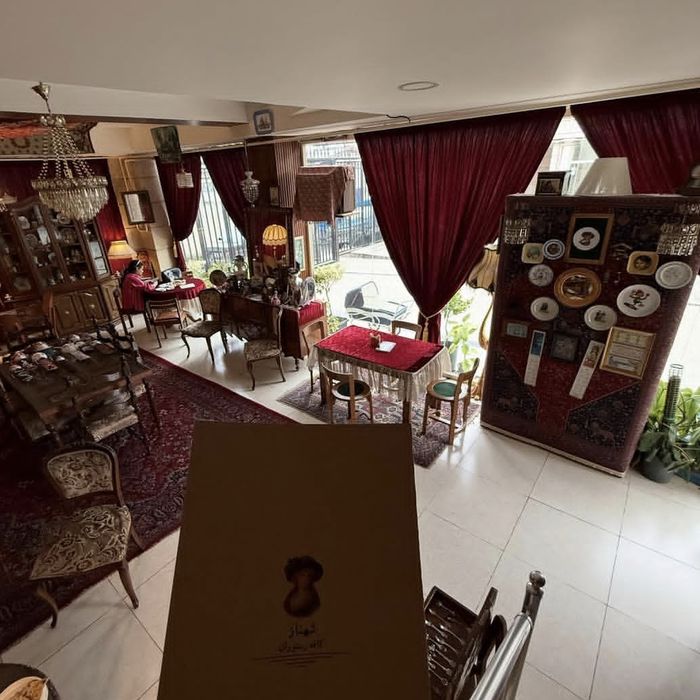فضای داخلی کافه به شدت حالوهوای دهههای ۴۰ و ۵۰ شمسی رو منتقل میکنه. پر از وسایل آنتیک، آینههای قدیمی، قابهای کلاسیک، لوسترهای سنتی، فرش و پردههای سنگین با رنگهای گرم (مثل قرمز تیره، قهوهای و طلایی)، کتابهای قدیمی روی قفسهها، گرامافون و صفحههای موسیقی نوستالژیک، و جزئیاتی مثل گلدانهای کلاسیک و مبلمان چوبی قدیمی. این دکور باعث میشه حس کنی وارد یک خانه قدیمی ایرانی شدی که زمان در آن متوقف شده؛ بسیاری از بازدیدکنندهها میگن فضا آدم رو غرق خاطرات گذشته میکنه و آرامش خاصی داره.